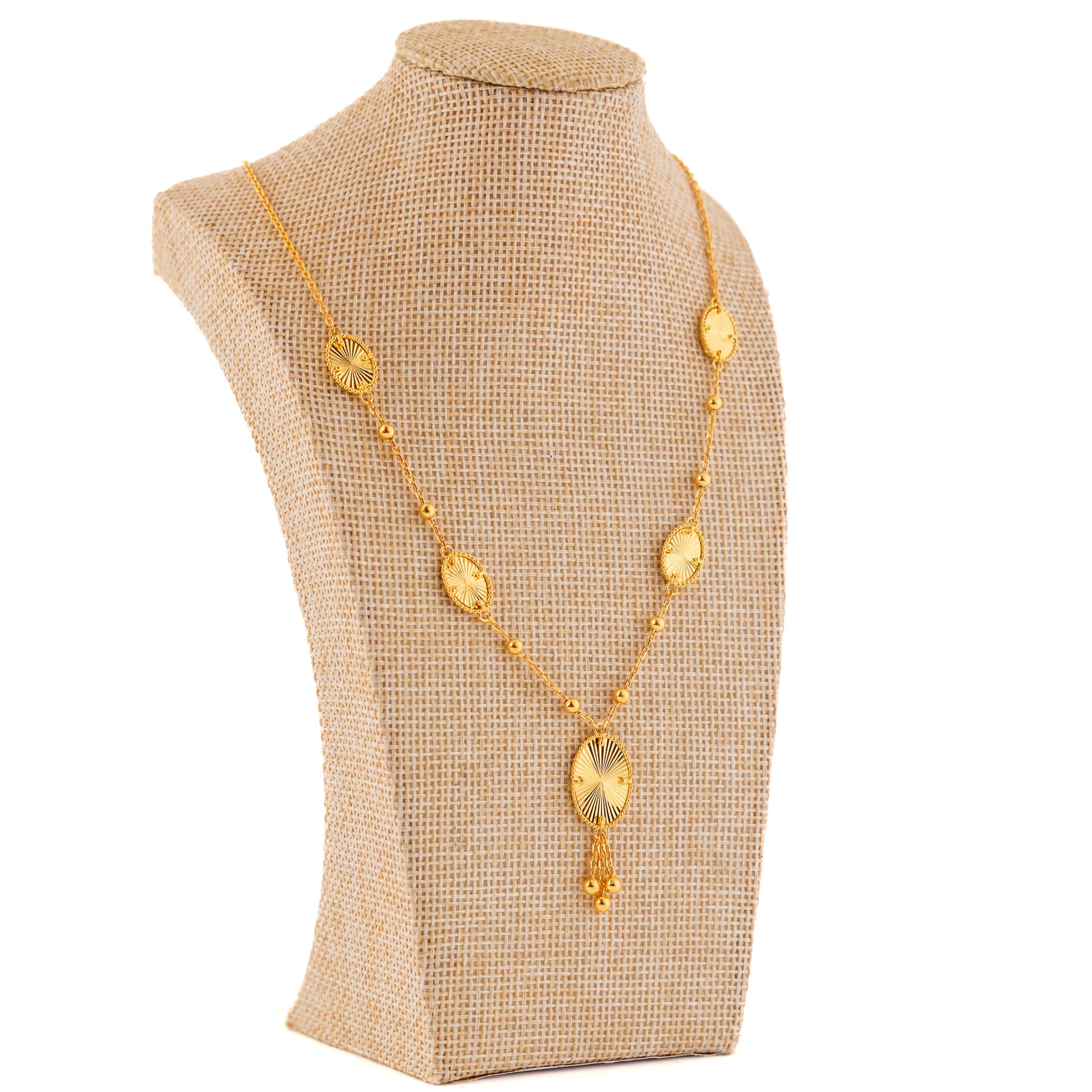 قلادة بيضاوية لامعة - فضة عيار 925 ومطلية بالذهب