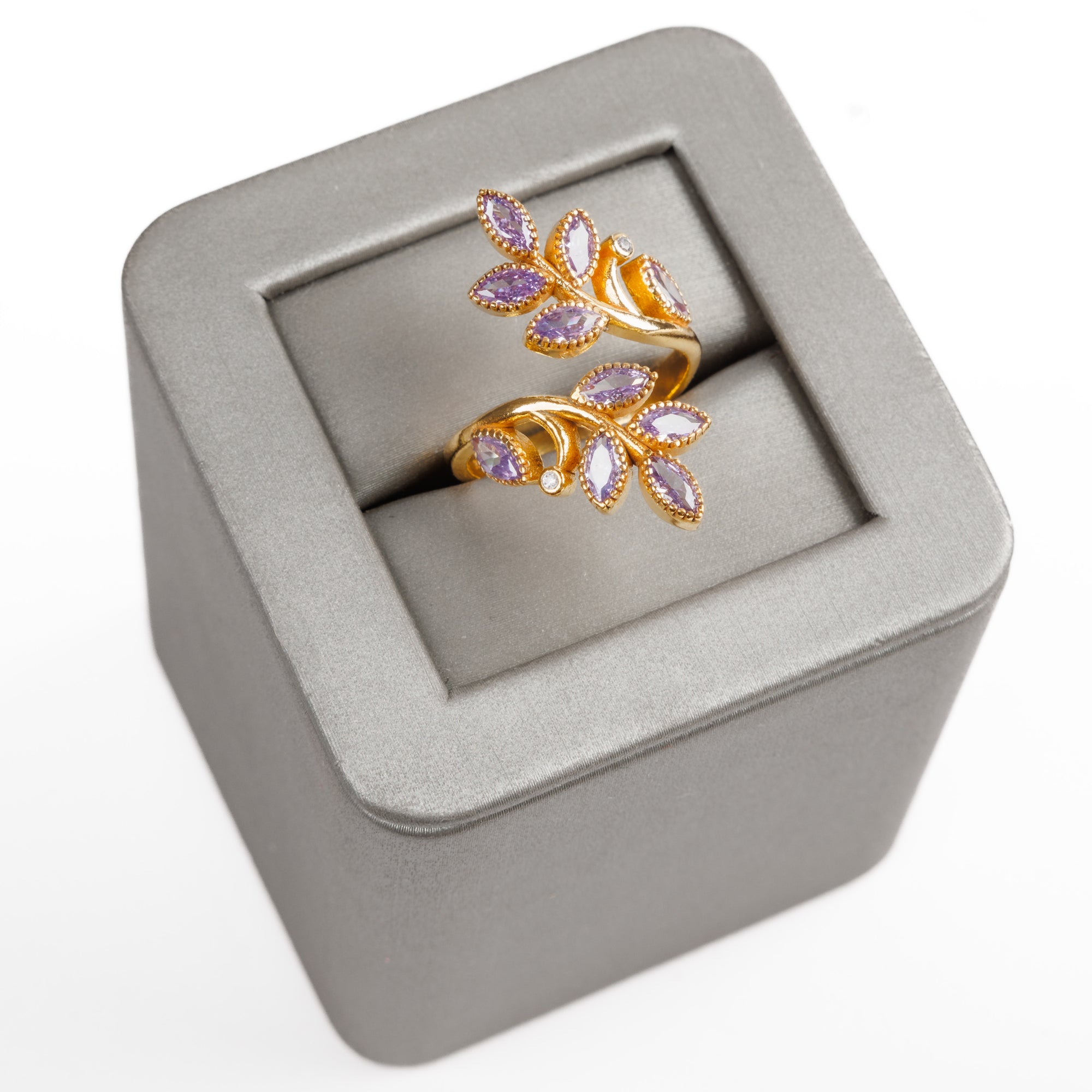 Leaf Ring / Light Amethyst (D1) - Silver 925 & Gold Plated